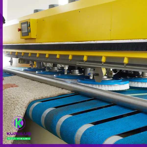 • Derinlemesine Durulama: Sentetik liflerin arasında deterjan kalıntısı kalmaması için çok aşamalı durulama işlemi uygulanır. Bu, halının daha geç kirlenmesini sağlar.